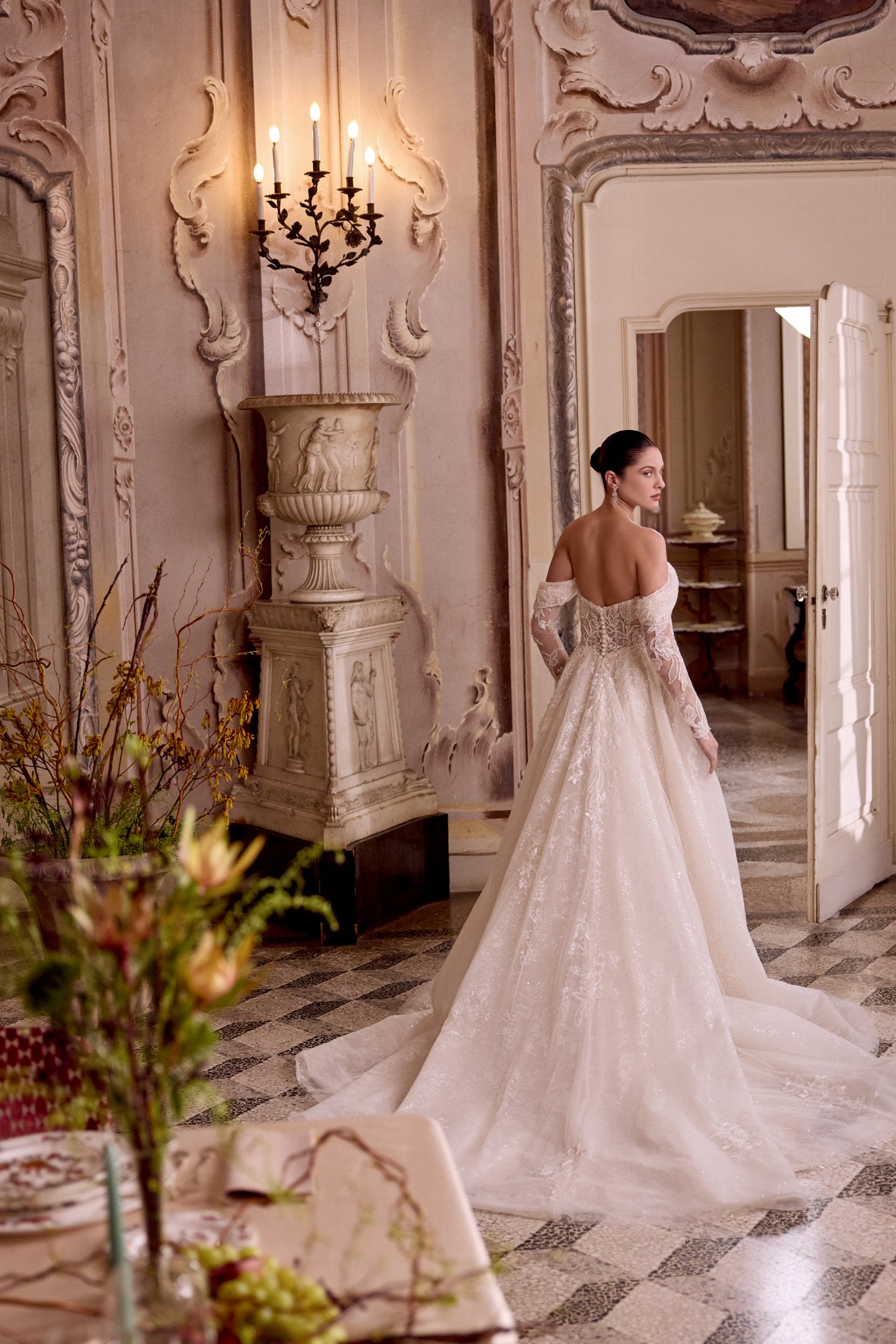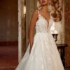 Λαμπερό πριγκιπικό νυφικό από μεταξωτό τούλι με κεντημένο μπούστο σε σχήμα καρδιάς και έξωμες τιράντες