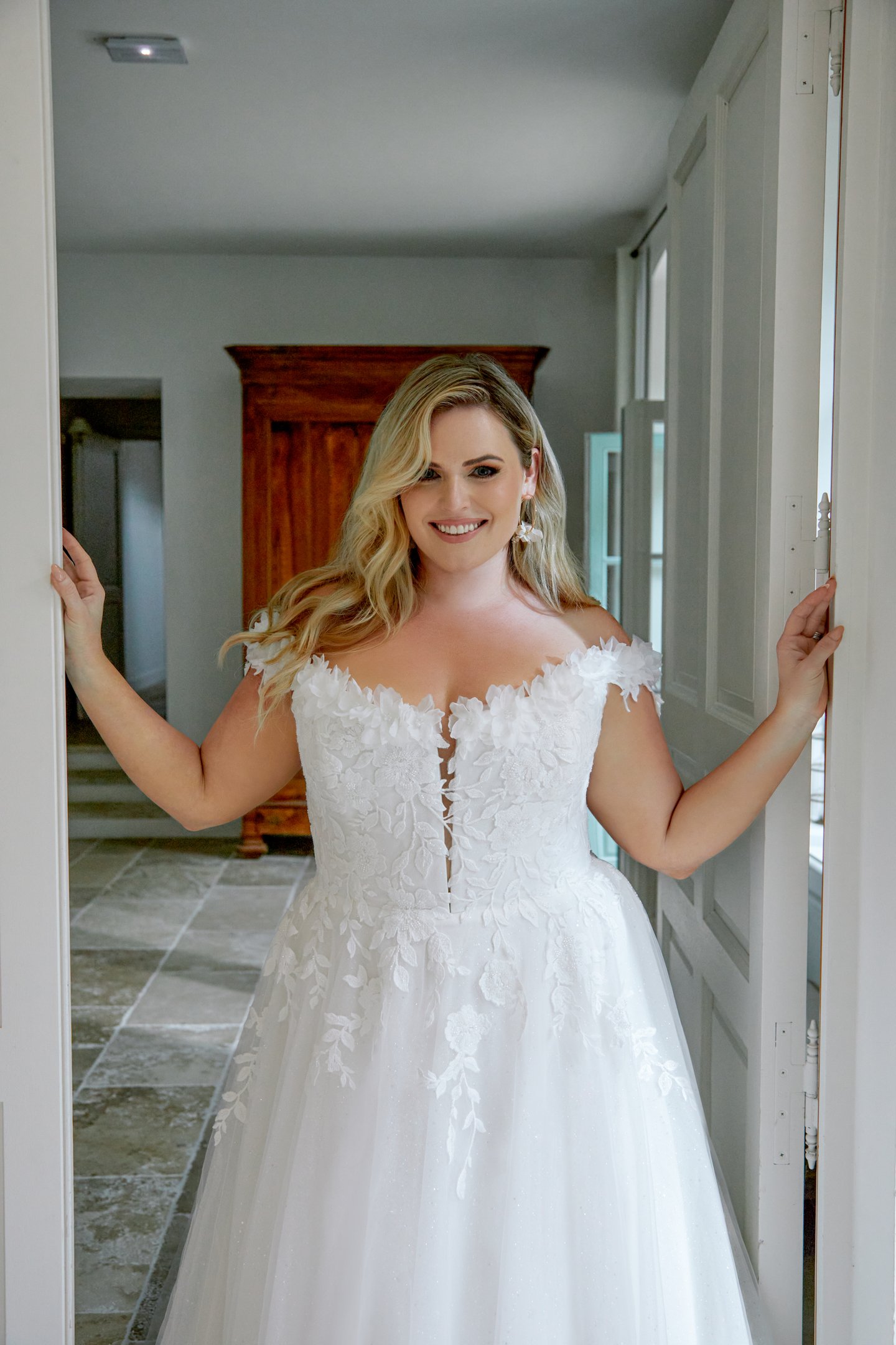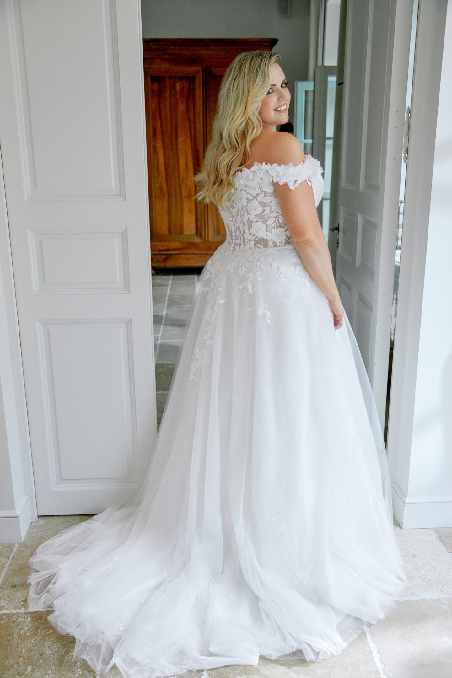 Ρομαντικό Νυφικό Precious με 3D λουλούδια και λαμπερή φούστα-